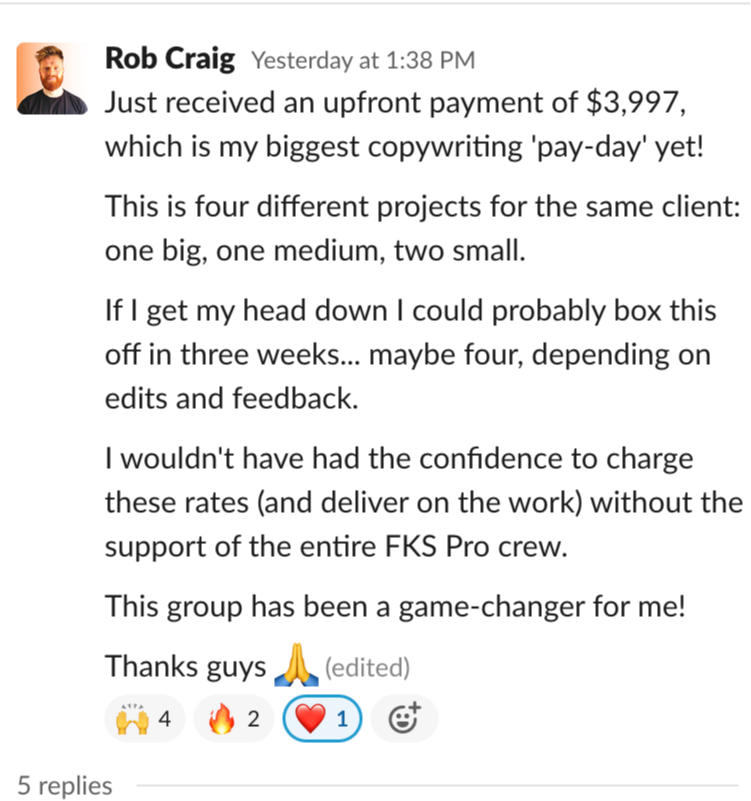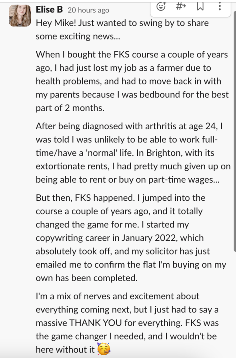 The premise of FKS used to be - āEarn Ā£350+ per hour as a high-end coffee shop copywriter, securing equity deals so you work once and get paid over and over again.ā