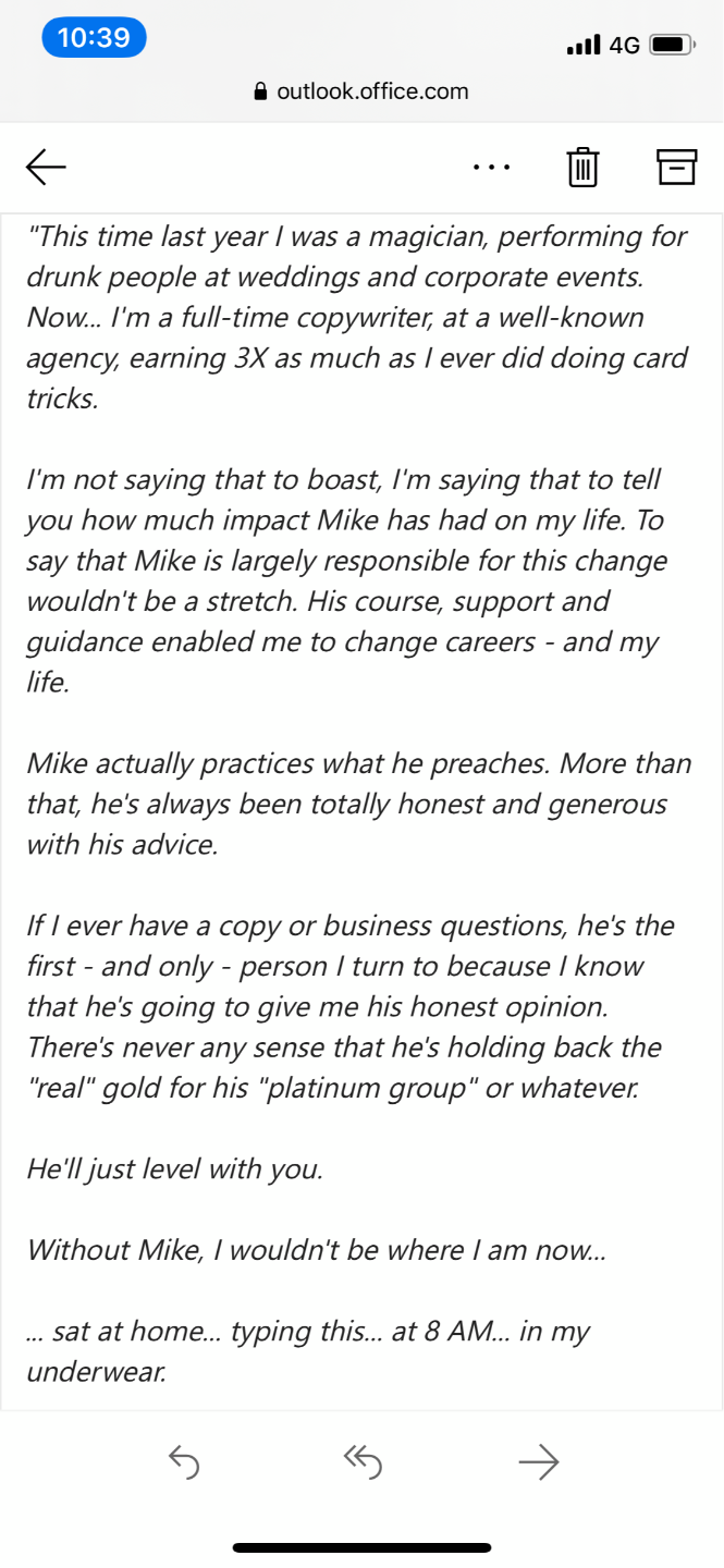 Thatās why I wanted to give anyone who was interested one final chance to come on board and get their hands on the course that has changed the lives of over 650 copywriters in the last 6 yearsā¦