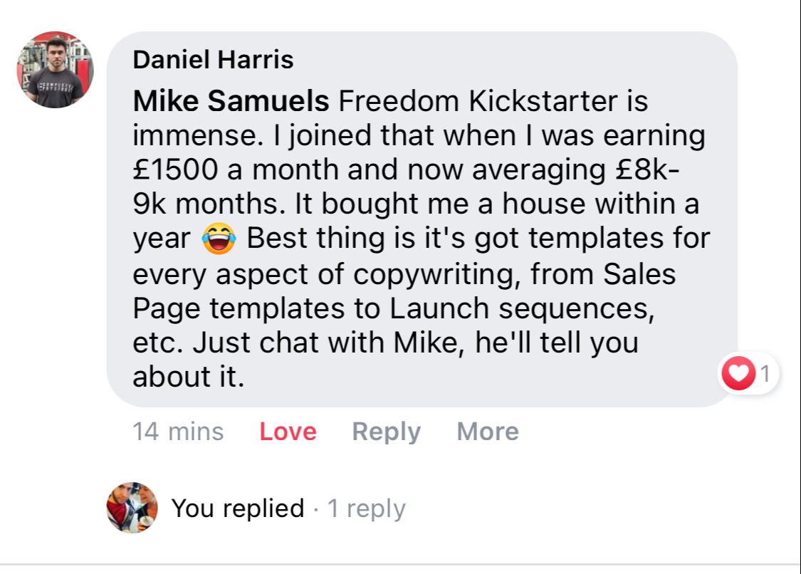 The beauty of going through the Freedom Kickstarter course, is that it opens up a world of opportunities.